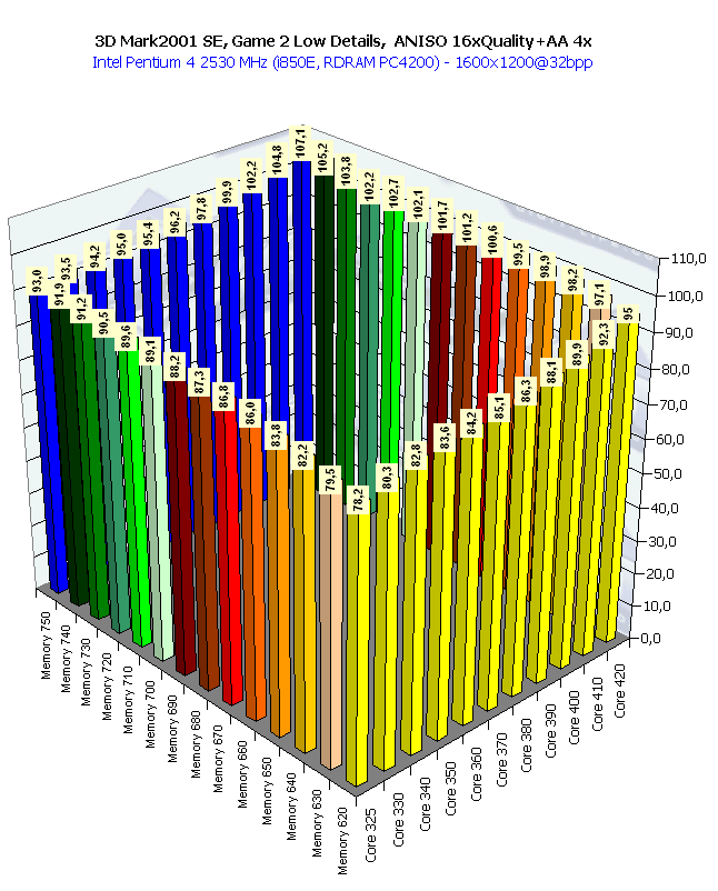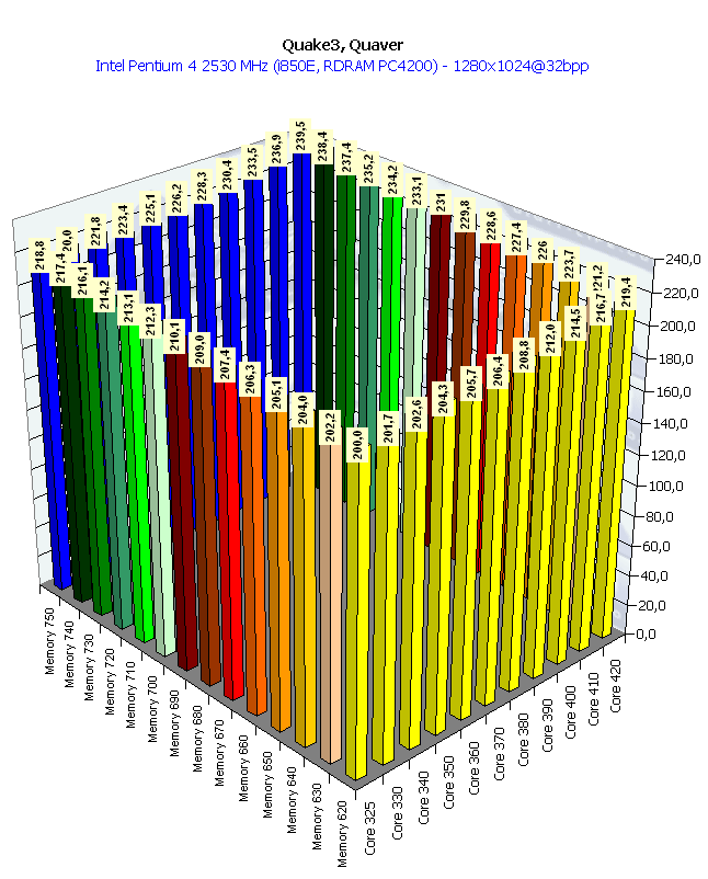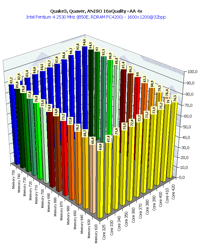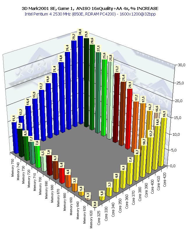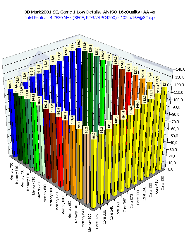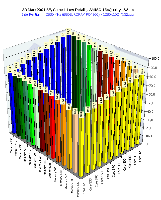 Собственно, картина та же самая, что и в 1024х768 при анизотропии и АА. Наиболее важным является прирост частоты памяти, поскольку АА "любит очень много кушать".
