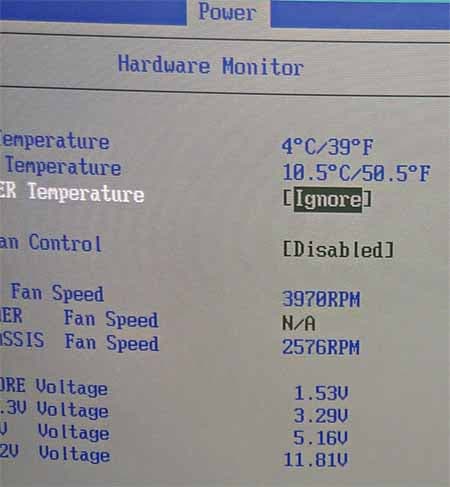 После всех приготовлений и выковыривания замерзшей в корпусе кнопки Power (серьезно, даже пришлось включать компьютер замыканием контактов на системной плате), датчики температур показали вот что:
