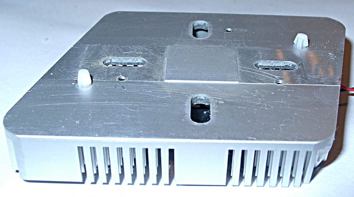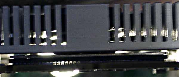 Благодаря тому самому выступу на радиаторе он прижимается к кристаллу без всяких помех, что прекрасно видно на просвет. Правда, надо отметить очень грубую обработку подошвы радиатора, что недопустимо для чипов с открытым кристаллом.