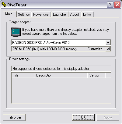 Мы хотим сразу выразить благодарность автору RivaTuner-а Алексею Николайчуку за оперативный выпуск новой версии этой утилиты, которая уже поддерживает и RADEON 9800 PRO: