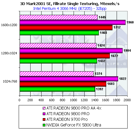 Мы тщательно рассмотрели работу RADEON 9800 PRO в играх, особенно с АА и анизотропией и не нашли никакой разницы в плане качества от RADEON 9700 PRO. В одном из предыдущих наших материалов мы очень подробно рассмотрели различия между АА и анизотропией от NVIDIA и ATI, поэтому советуем прочитать об этом в обзоре GeForce FX 5800 Ultra (теория, практика), а также в материале по GeForce FX 5600/5200 (практическое сравнение анизотропии).