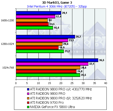 - Результаты тестов: Игровые тесты 3DMark03: Game3