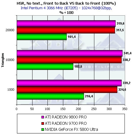 Оптимизация драйверов под RADEON 9800 PRO есть, однако, видимо, программисты в данном случае не считали этот тест уж очень важным и не очень старались :-)