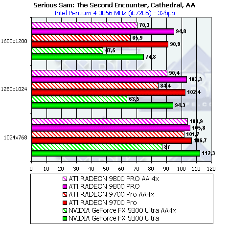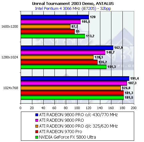 - Оптимизация драйверов от ATI под RADEON 9800 PRO мы наблюдаем и в этом случае.
