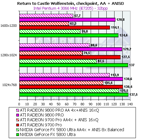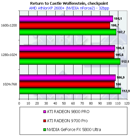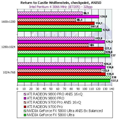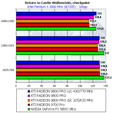 - Return to Castle Wolfenstein (MultiPlayer) (id Software/Activision) — OpenGL, мультитекстурирование, Checkpoint-demo, настройки тестирования — все на максимально возможном уровне, S3TC OFF, конфигурации можно скачать тут