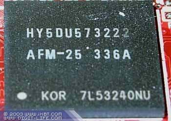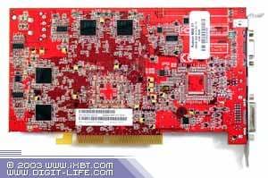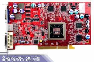 | Kарта имеет интерфейс AGP x8/x4, 256 МБ памяти DDR SDRAM , размещенной в 8-ми микросхемах на лицевой и оборотной сторонах PCB. Микросхемы памяти производства Hynix (маркировка HY5DU573222). Время выборки у микросхем памяти 2,5 ns, что соответствует частоте работы 400 (800) МГц, память же работает на частоте 365 (730) МГц. Частота работы GPU — 412 MHz. Интерфейс обмена с памятью — 256 бит. | ![]() |