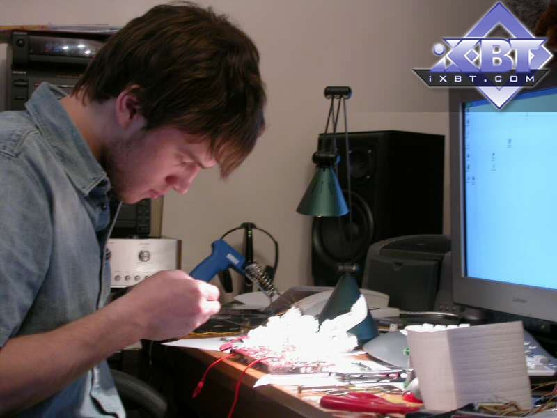 Мы будем заниматься преодолением некоторых трудностей, возникающих при разгоне видеокарт в целом и RADEON 9800XT, в частности. Такие проблемы проявляются в виде физического предела частоты работы, обусловленного технологическим процессом, недостаточного охлаждения и нехватки электропитания для работы столь мощных компонентов в предельных режимах. Ведь GPU R360, выполненный по 0,15 мкм техпроцессу и работающий на частоте 412 МГц и без того весьма горяч, а при дальнейшем повышении частоты в нелинейной зависимости повышаться и тепловыделение. Для обеспечения стабильности на повышенных частотах требуется повышения рабочего напряжения, что опять-таки влечет за собой повышенное тепловыделение.