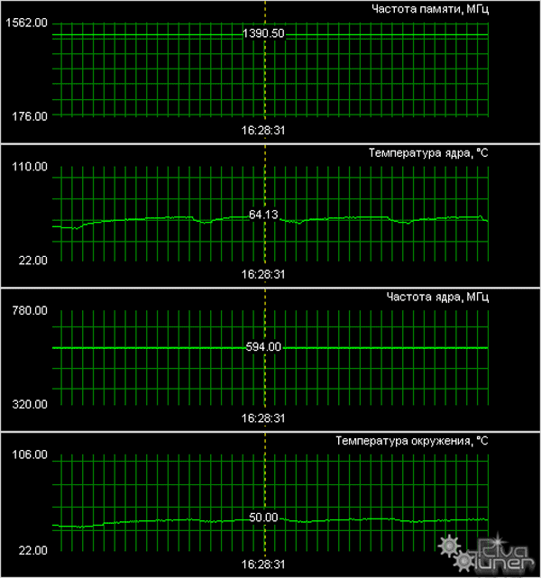 А вот у X1650 XT пока сложилось все не очень хорошо, немного проиграл конкуренту. Но преимущество над X1650 PRO впечатляет.