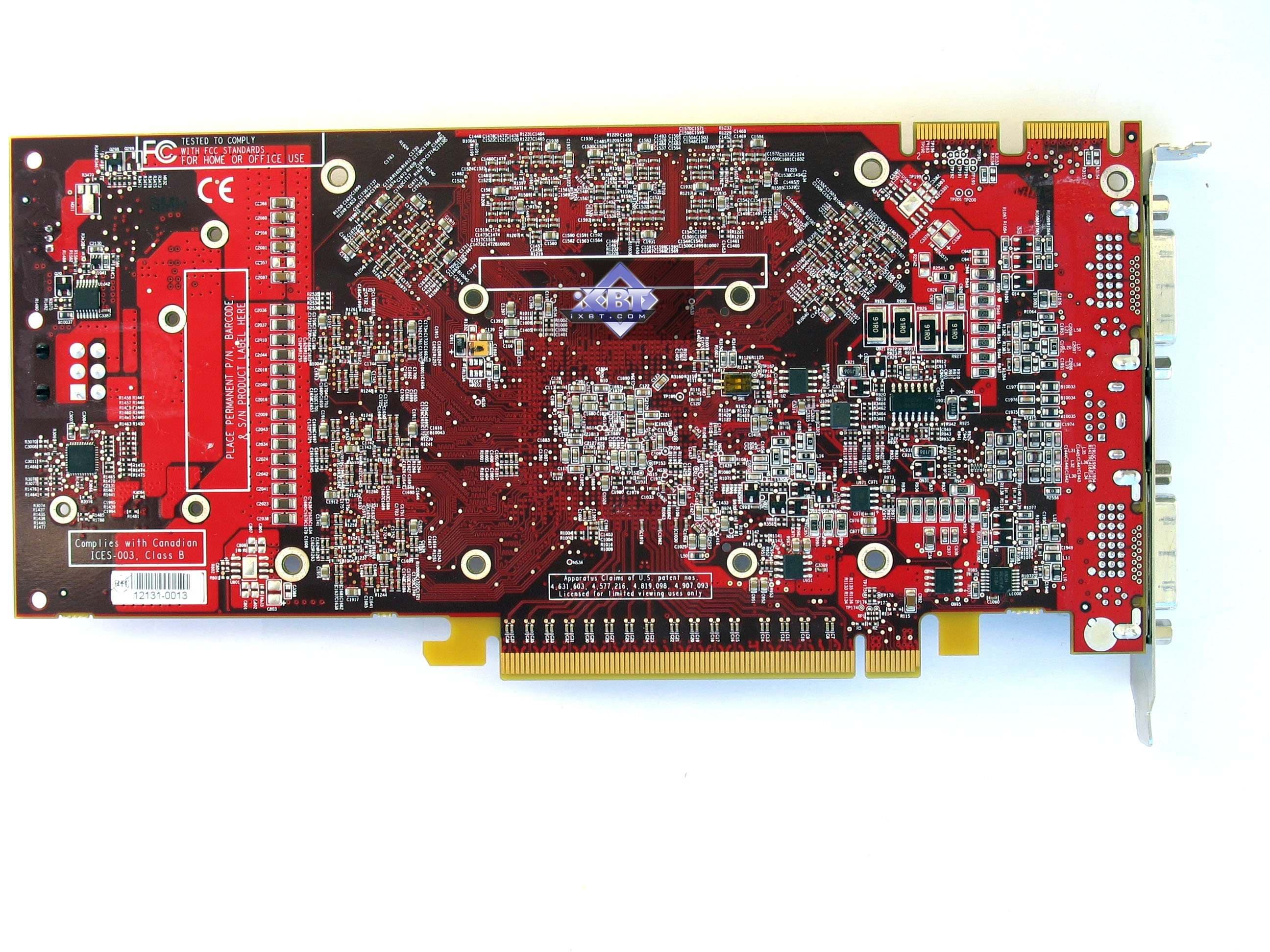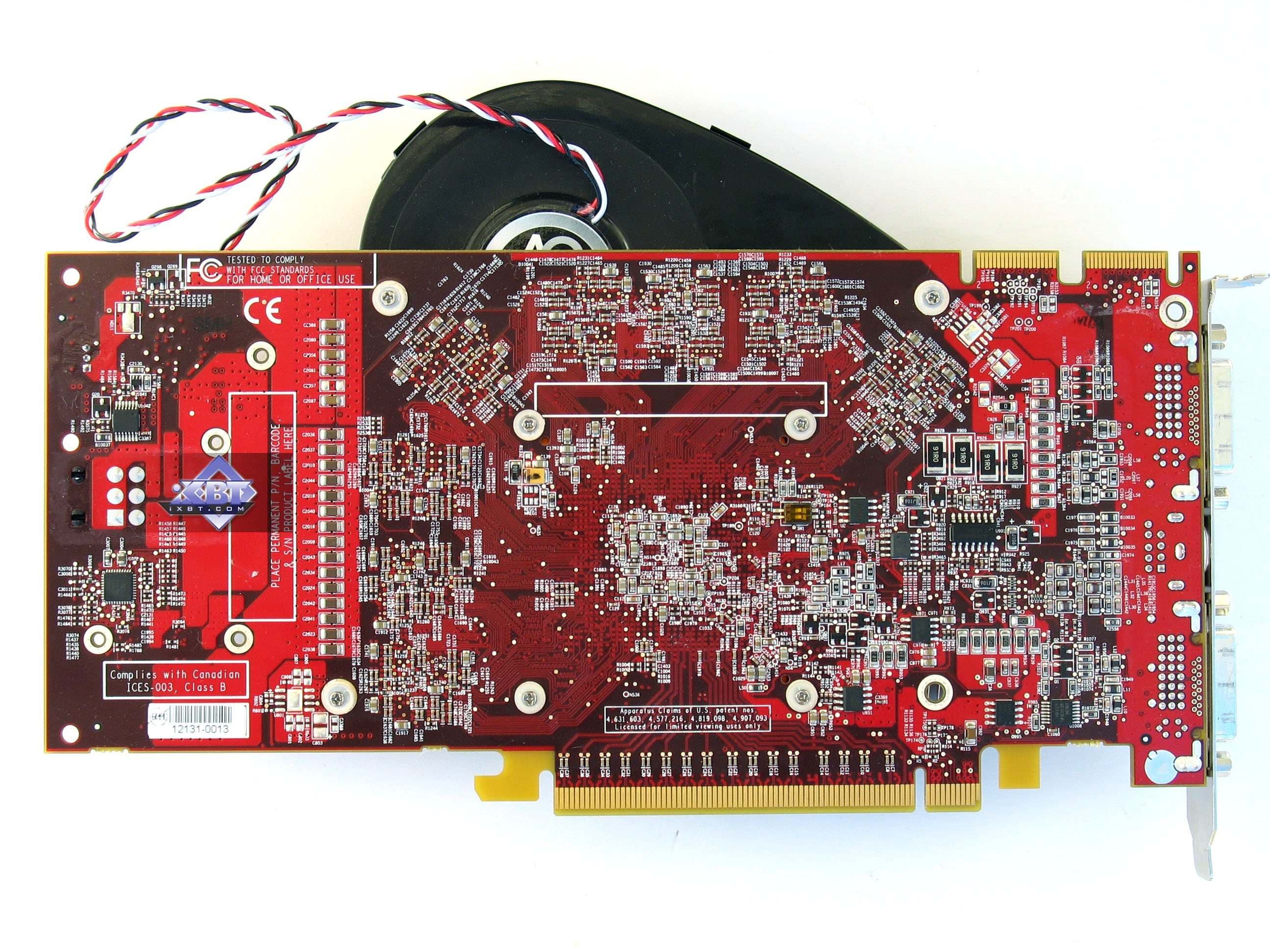 Очевидно, что новинка имеет хоть и основанную на ранее имевшемся дизайне PCB, но все же уникальную плату. PCB у X1950 PRO, в общем, схожа с дорогой и сложной картой от X1900-семейства, однако в значительной степени упрощена, положение микросхем памяти повернуто на 90 градусов. Хотя в целом тот полукруг относительно ядра сохранился, что и понятно для 256-битной шины и высокой частоты работы микросхем - важно иметь одинаковые (или почти) длины дорожек от ядра до них. Свое привычное место сохранила микросхема RAGE Theater, обеспечивающая VIVO. В его состав входит TV-in, подключение к которому осуществляется через специальный переходник. А разъем для подключения внешнего питания изменил свое привычное положение и сместился на середину PCB, оставшись в хвосте платы. Заодно сильно упростился и сам блок питания, где резко уменьшилось количество аналоговых элементов, как бы сказать проще, - он стал более «цифровым». Это должно по идее понравиться оверклокерам.