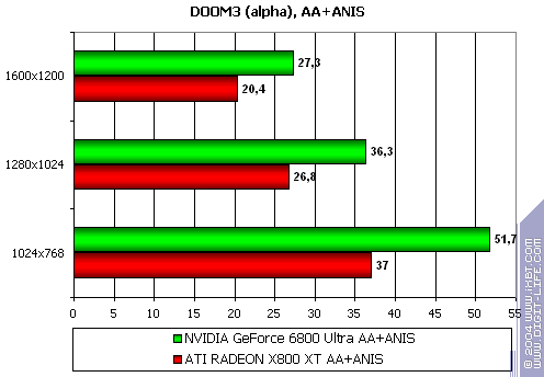 - DOOM III (alpha version) (id Software/Activision) — OpenGL, мультитекстурирование, настройки тестирования — все на максимально возможном уровне, S3TC OFF,