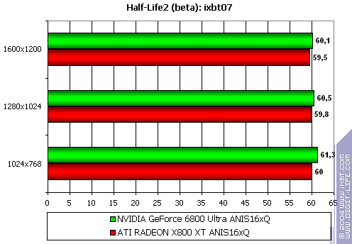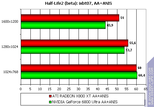 - Half-Life2 (Valve/Sierra) — DirectX 9.0, demo (ixbt07. Тестирование проводилось при включенной анизотропной фильтрации, а также в тяжелом режиме с АА и анизотропией.