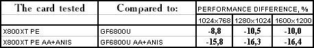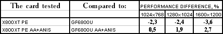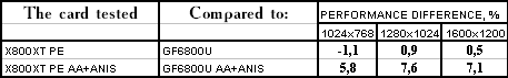 - Gigabyte RADEON X800 XT PE против NVIDIA GeForce 6800 Ultra — победа! И снова, чем сложнее и тяжелее режим работы, чем выигрыш больше.