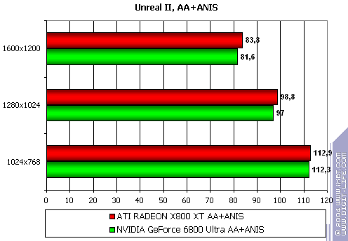 Что можно сказать? Все чаще и чаще встречаются слова «паритет» или «равенство». А это значит, что действительно на сегодня в целом можно поставить знак равенства между X800 XT и 6800 Ultra в плане производительности.