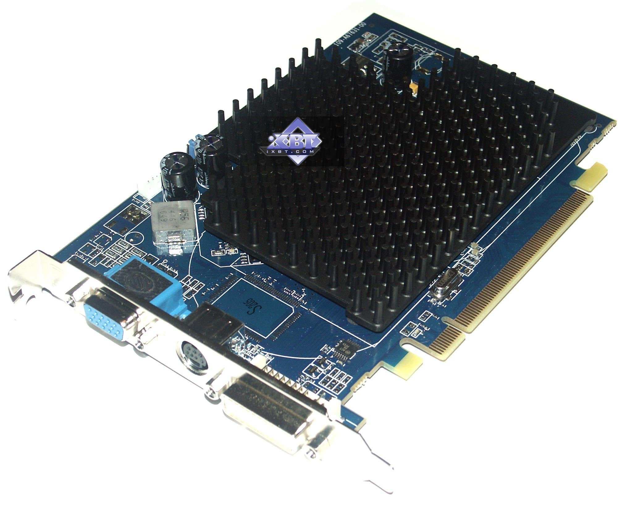 - Sapphire RADEON X1300 PCI-E 256MB — самая младшая карта из нового семейства X1xxx. Показала себя очень достойно, обошла многих конкурентов по своей цене в 70-90 долларов США (на начало года). Качество исполнения на высоте, однако есть проблема с нагревом. Гонясь за тишиной, разработчики как-то забыли, что видеокарта стоит внутри системного блока, и даже если она сама способна работать в жаре, то рядои находящиеся комплектующие могут и перегреться.