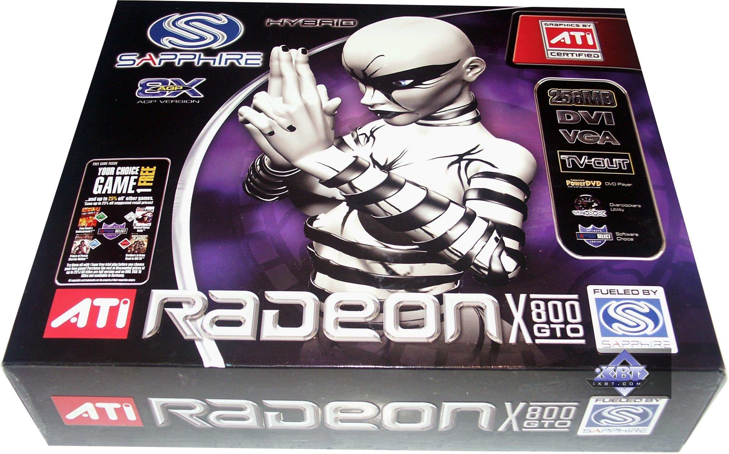 - Sapphire RADEON X800GT AGP 256MB — 550/1150 МГц;
