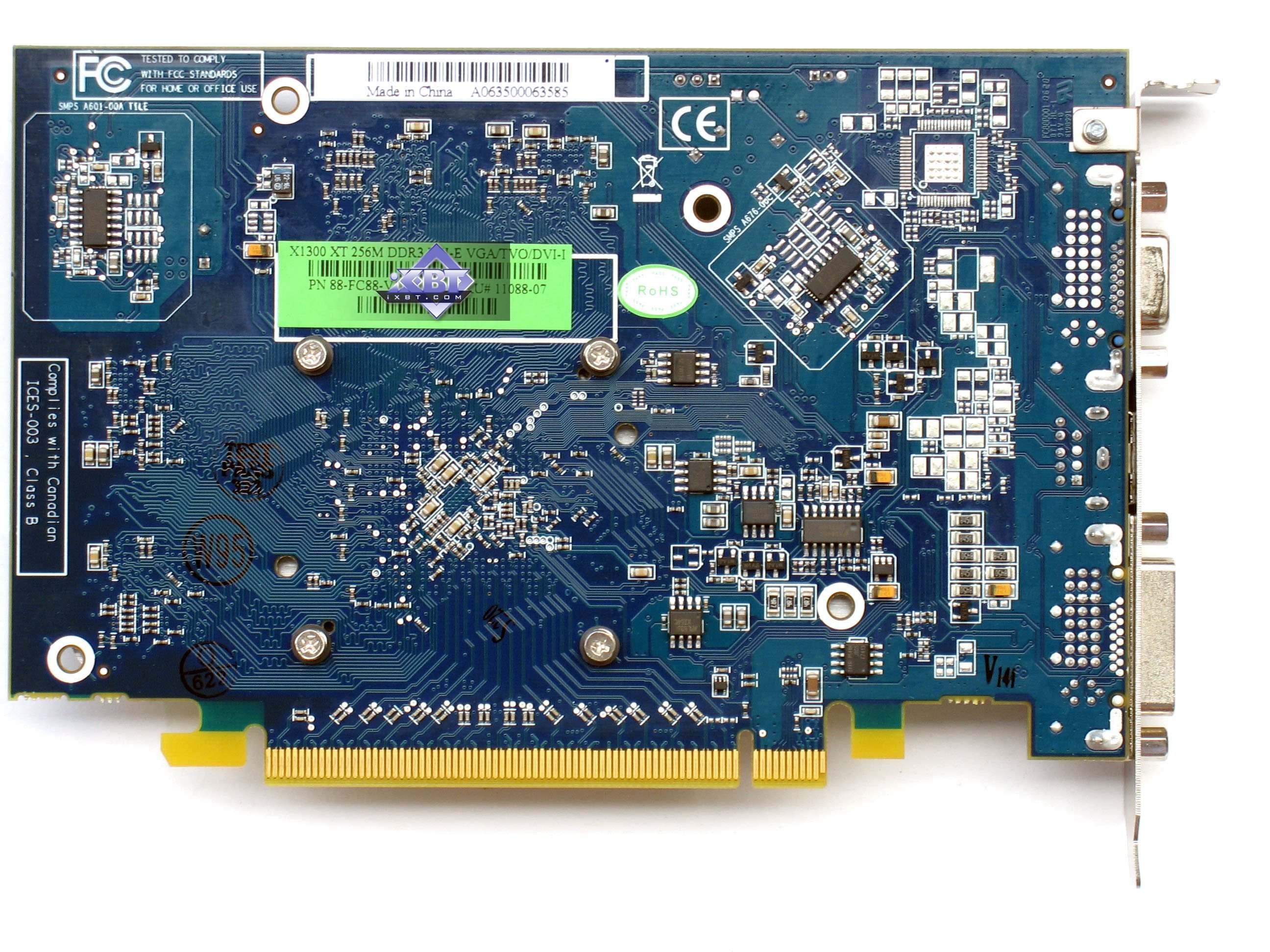 Это, так сказать, середнячки. А в бюджетном секторе обосновались карты серии X1300. Ядро имеет уже по 4 пиксельных шейдерных блока, 4 текстурника и 4 ROP, и 3 вершинных конвейера. Частоты работы у X1300 — 450/550 MHz, а у X1300 PRO — 600/800 MHz.