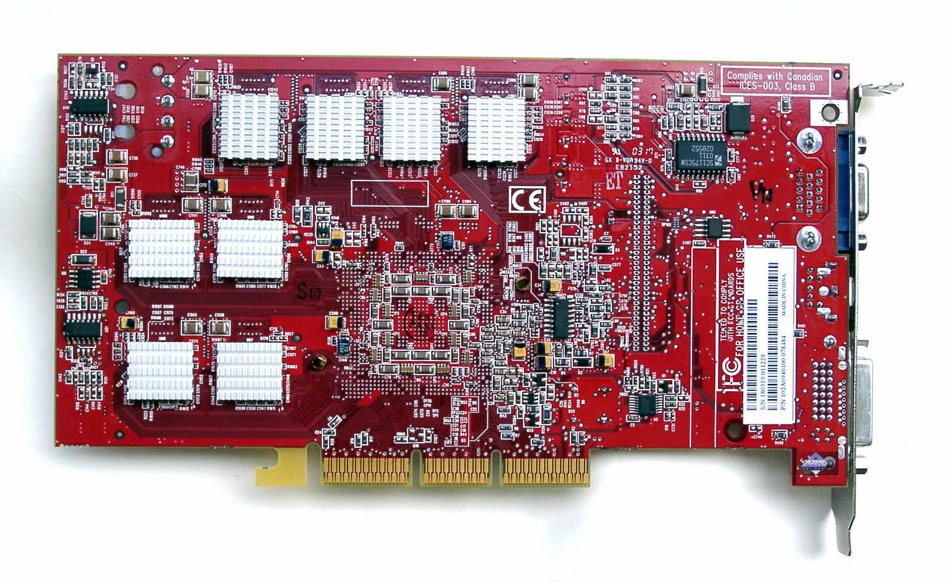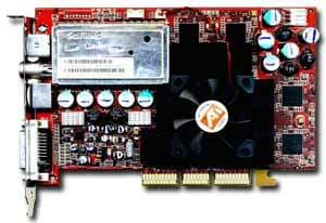 | Карта имеет интерфейс AGP x8/x4/x2, 128 МБ памяти DDR SDRAM, размещенной в 8-ми микросхемах на лицевой и оборотной сторонах PCB. Микросхемы памяти производства Samsung (BGA). Время выборки у микросхем памяти 2.8 ns, что соответствует частоте работы примерно 350 (700) МГц, память работает на частоте 340 (680) МГц. Частота работы GPU — 380 MHz, шина обмена с памятью 256бит. | ![]() |