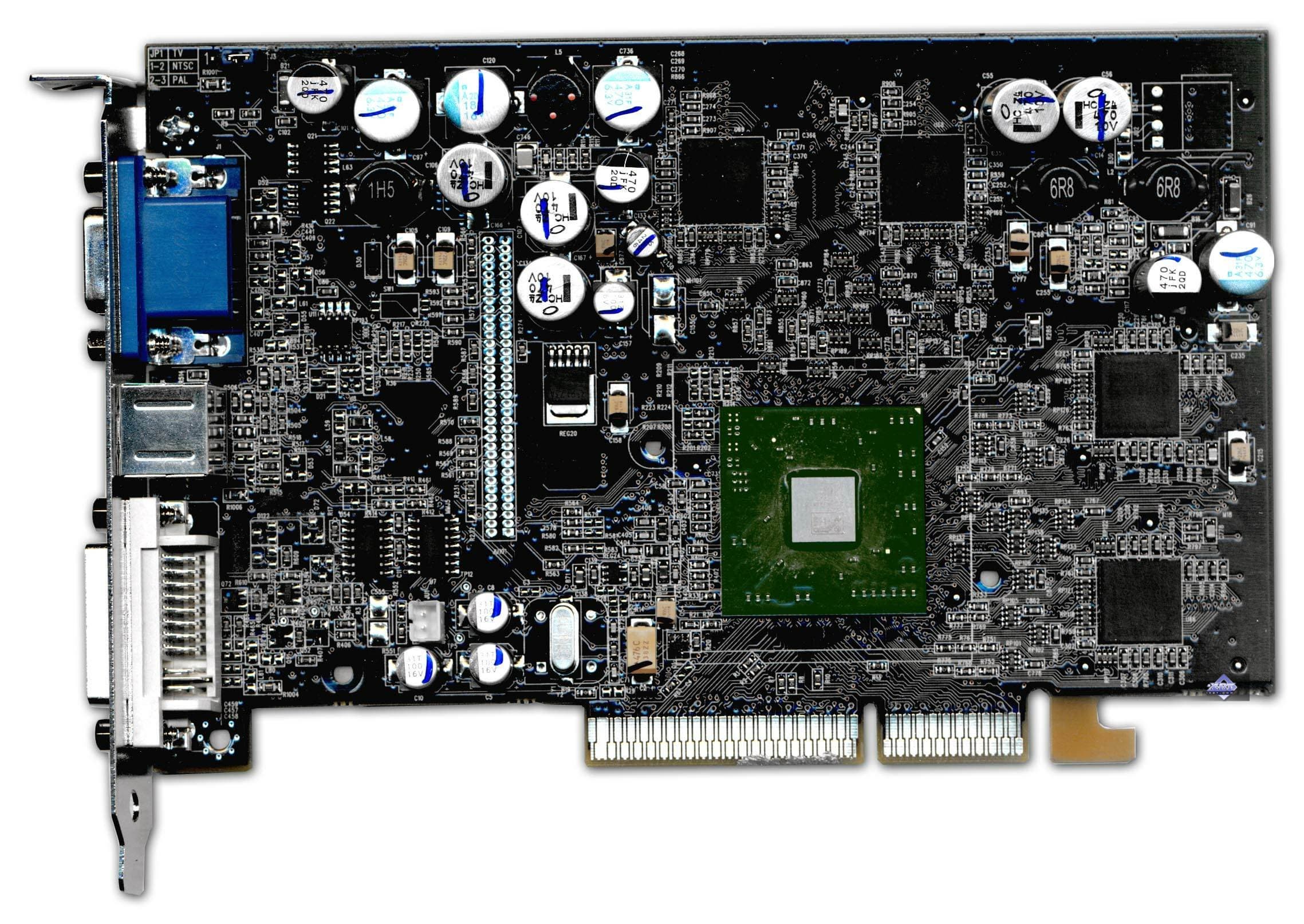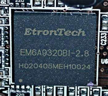 | Карта имеет интерфейс AGP x8/x4/x2, 128 МБ памяти DDR SDRAM, размещенной в 8-ми микросхемах на лицевой и оборотной сторонах PCB. В нашей лаборатории побывали две карты, имеющие разные микросхемы памяти. На одной они — производства Samsung (BGA). На второй EtronTech. Время выборки у микросхем памяти 2.8 ns, что соответствует частоте работы примерно 350 (700) МГц, память работает на частоте 300 (600) МГц. Частота работы GPU — 400 MHz, шина обмена с памятью 128бит. | ![]() |