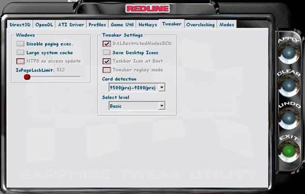 Мне этот дизайн очень напомнил некую утилиту, которой когда многие пользовались: RadeonTweak. Возможно, что компания купила права на нее, а может быть автор распространяет программу под брендом Sapphire RedLine.