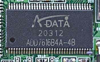 | Карта имеет интерфейс AGP x8/x4/x2, 64 МБ памяти DDR SDRAM, размещенной в 4-х микросхемах на лицевой и оборотной сторонах PCB. Микросхемы памяти маркировки A-Data. Время выборки у микросхем памяти 4 ns, что соответствует частоте работы 250 (500) МГц, память работает на частоте 200 (400) МГц. Частота работы GPU — 250 MHz. Подчеркну, что шина обмена с памятью у карты — 64bit!!! К сожалению, об этом никто не сказано, ни на коробке, ни на самой карте, ни на сайте производителя. Как мы видим, 64 мегабайта получились за счет отсечения половины микросхем памяти (пустые места на PCB), каждая микросхема — 16 битная, в сумме — 64бит. | ![]() |