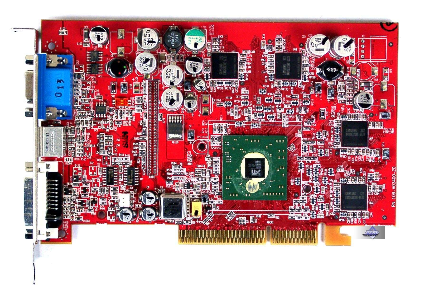 | Карта имеет интерфейс AGP x8/X4, 256 МБ памяти GDDR3 SDRAM, размещенной в 8-ми микросхемах на лицевой и оборотной сторонах PCB. Микросхемы памяти Samsung (GDDR3). Время выборки у микросхем памяти 1.6 ns, что соответствует частоте работы 625 (1250) МГц, память же работает на частоте 450 (900) МГц. Частота работы GPU — 475 MHz. Шина обмена с памятью — 256 bit. Число пиксельных конвейеров × число текстурных блоков — 12х1. | ![]() |
