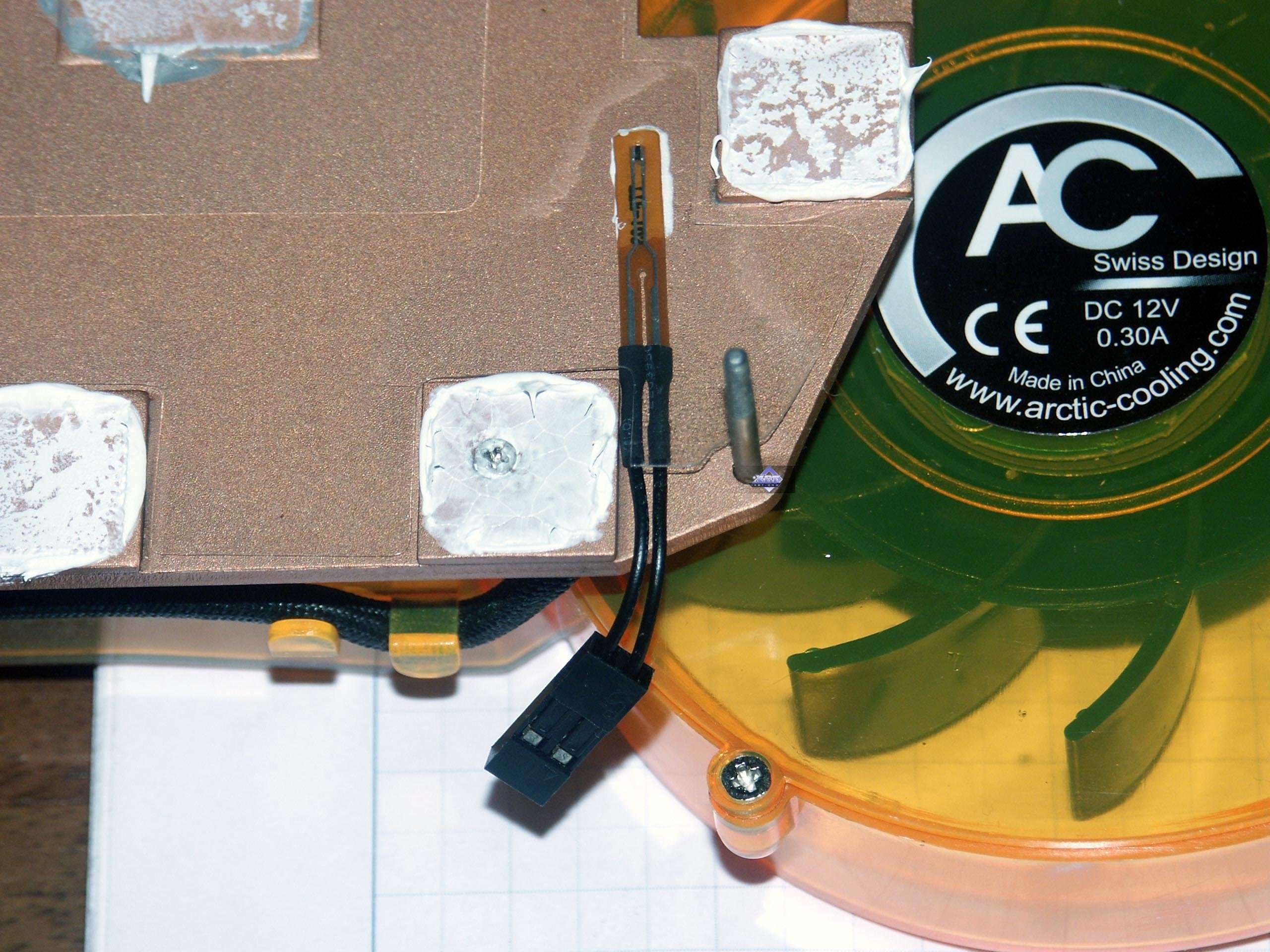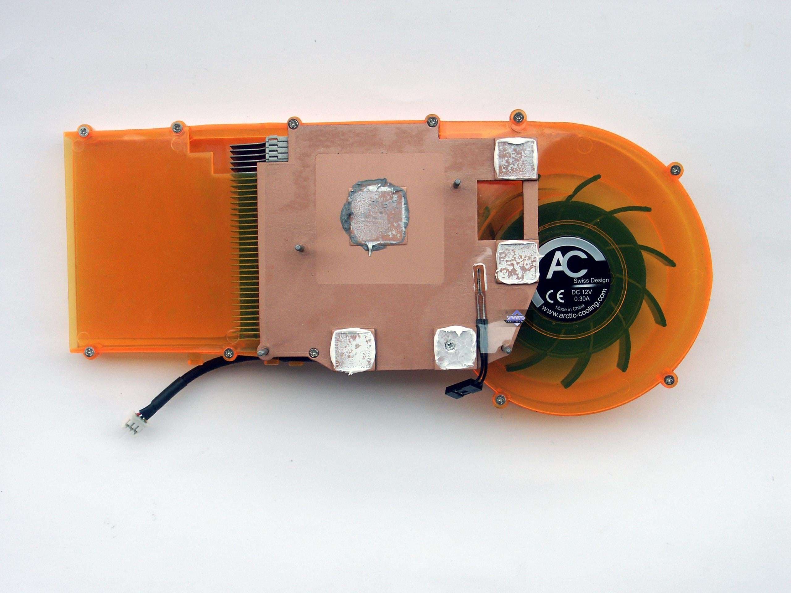А выделяется «ядовитая» карта несколькими признаками. Во-первых, изначально планировалось, что только у Toxic будет синяя PCB, однако впоследствии уже вышли в продажу и обычные X800 на таких PCB. Во-вторых, и это главная особенность, установка на карте примерно того же самого, что играет роль IceQ у HIS: кулер от Arctic Cooling. Плюс дополнительные возможности по мониторингу. Но об этом мы расскажем позже.