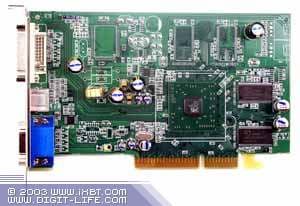 | Карта имеет интерфейс PCI-Express x16, 128 МБ памяти DDR SDRAM размещенной в 4-х микросхемах на лицевой и оборотной сторонах PCB. Микросхемы памяти Mezza. Время выборки у микросхем памяти 5 ns, что соответствует частоте работы 200 (400) МГц, на которой память и работает. Частота работы GPU — 325 MHz Шина обмена с памятью — 64 bit. Число пиксельных конвейеров × число текстурных блоков — 4х1. | ![]() |