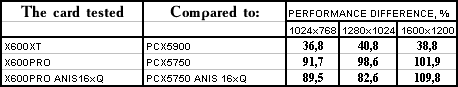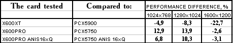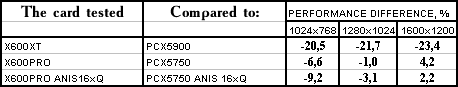 Производительность X600XT/PRO/X300SE