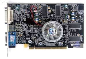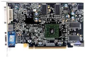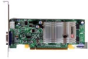 | Карта имеет интерфейс PCI-Express x16, 128 МБ памяти DDR SDRAM, размещенной в 8-ми микросхемах на лицевой и оборотной сторонах PCB. Микросхемы памяти Hynix. Время выборки у микросхем памяти 3.3 ns, что соответствует частоте работы 300 (600) МГц, на которой память и работает. Частота работы GPU — 400 MHz Шина обмена с памятью — 128 bit. Число пиксельных конвейеров × число текстурных блоков — 4х1. | ![]() |