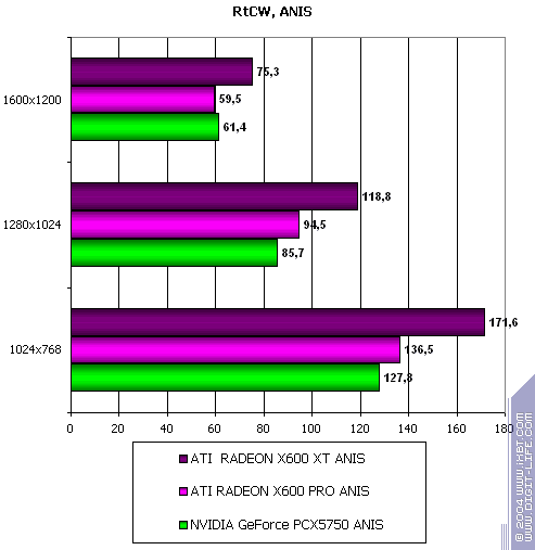 - Return to Castle Wolfenstein (MultiPlayer) (id Software/Activision) — OpenGL, мультитекстурирование, ixbt0703-demo, настройки тестирования — все на максимально возможном уровне, S3TC OFF, конфигурации можно скачать тут