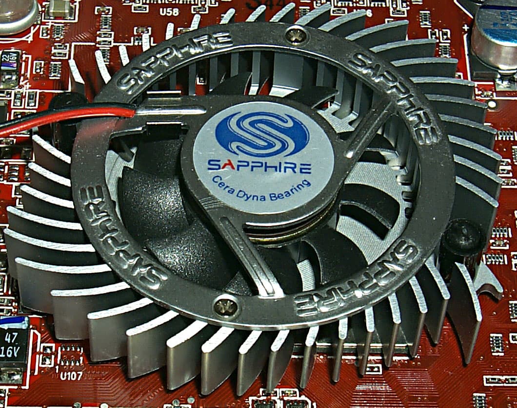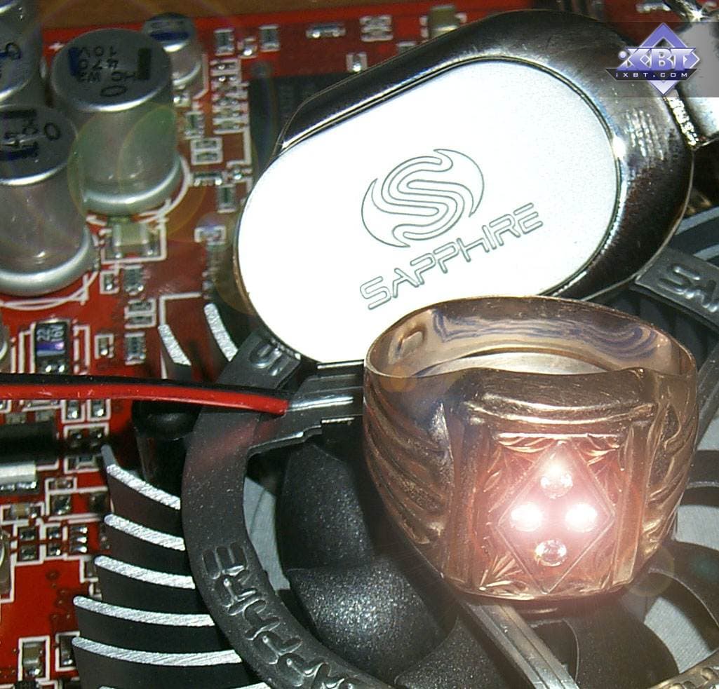 | Разработчики из Sapphire, несмотря на свою близость к ATI, все же решили как-то выделить свои продукты, прежде всего, изменением референс-кулера на свой собственный. Еще в обзоре линейки карт от этой компании мы обратили на это внимание. По своей конструкции радиатор схож с теми, что мы неоднократно видели на картах на базе GeForce4 Ti 4200 — принцип выдувания горячего воздуха из центра на ребра радиатора. | ![]() |
