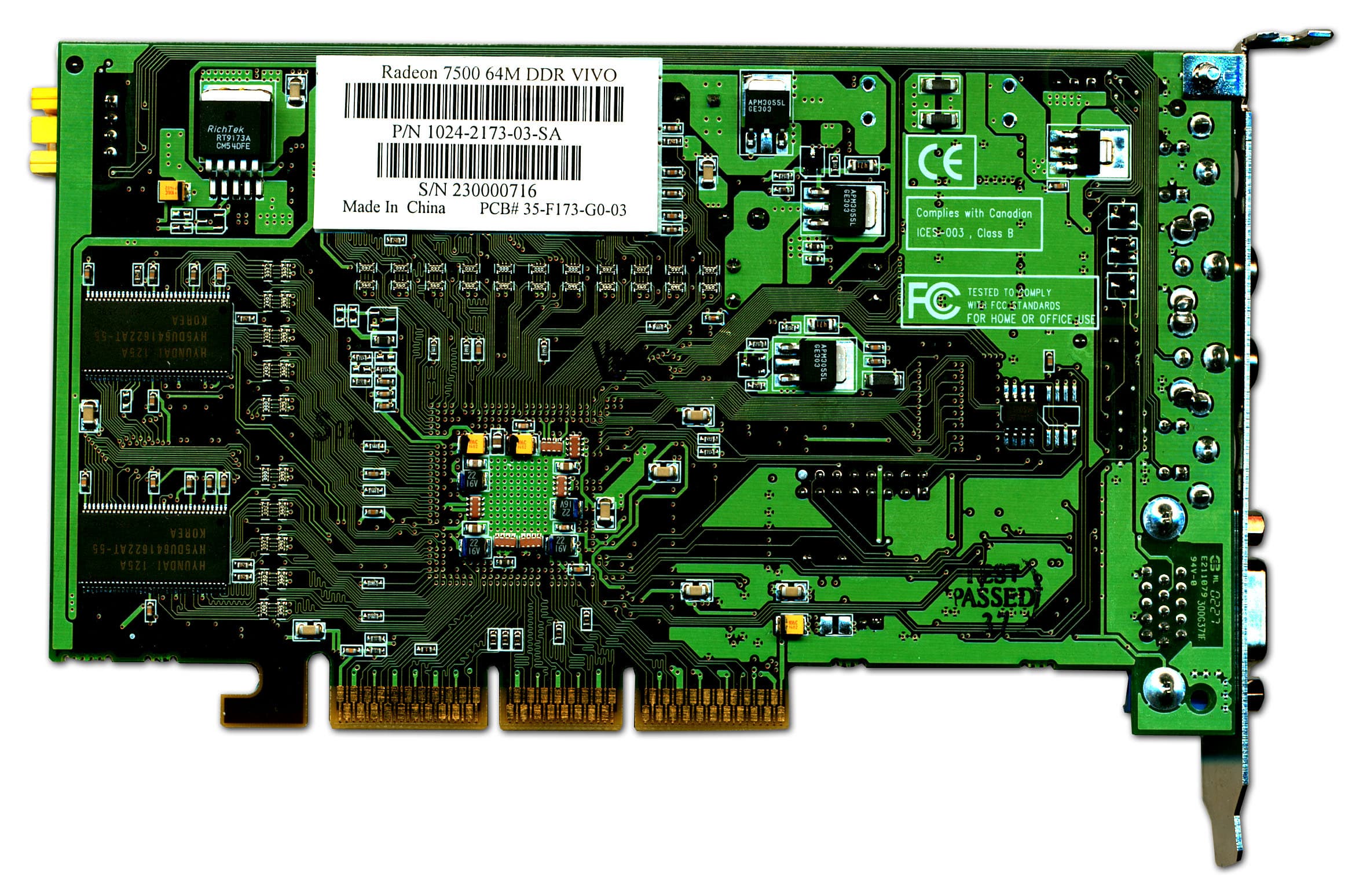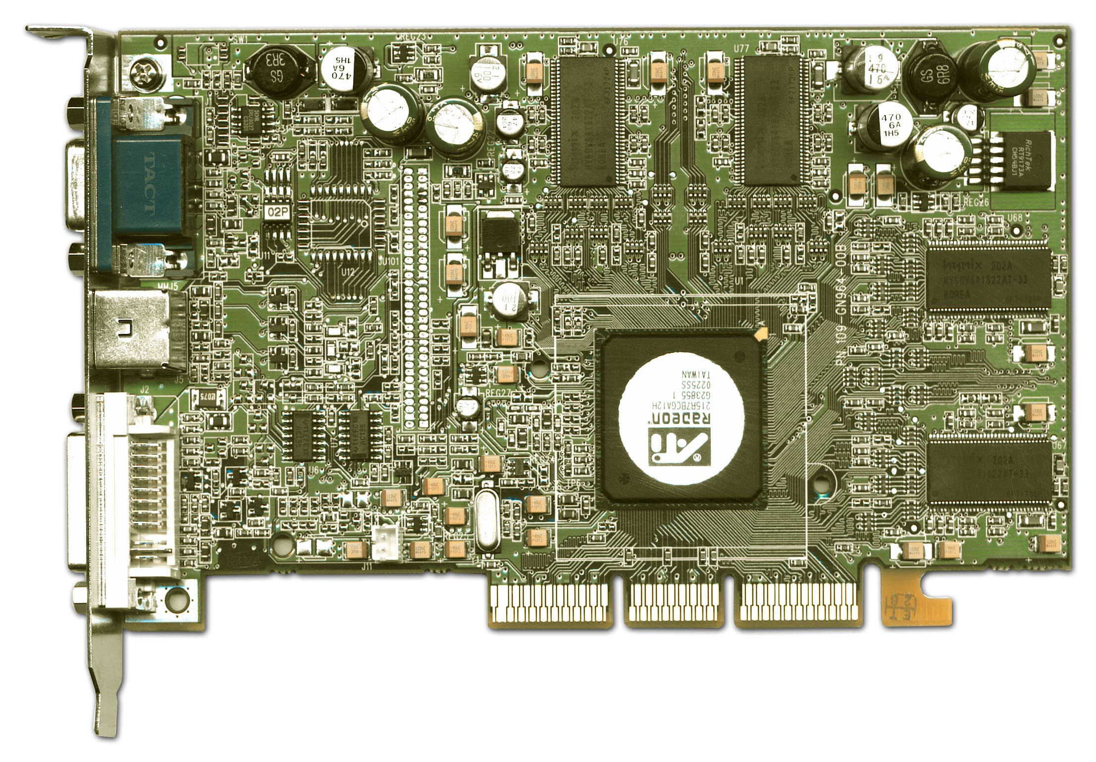 - Обе карты на базе RADEON 7500 выполнены на основе собственного дизайна Sapphire и кардинально отличаются от эталонной карты. К тому же обе карты, несмотря на то, что имеют самый быстрый из RADEON 7500 чип (270 МГц), снабжены очень медленной 183-мегагерцовой памятью, которую мы могли видеть еще на прежних RADEON 64MB DDR. Впрочем, и подобные карты есть у нас в 3DGiТогах :-) Что касается VIVO, то, как мы видим, эта функция реализована через Rage Theater, как и было ранее. В принципе, эта карта с VIVO очень похожа на уже упомянутый RADEON 64MB DDR, который снабжался тем же сопроцессором и имел такой же набор гнезд для подключения видеокабелей.