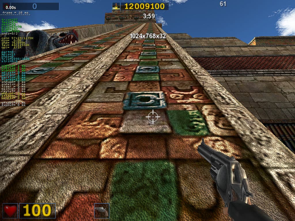 - Serious Sam: The Second Encounter v.1.05 (Croteam/GodGames) — OpenGL, мультитекстурирование, Grand Cathedral demo, настройки тестирования: quality, S3TC OFF