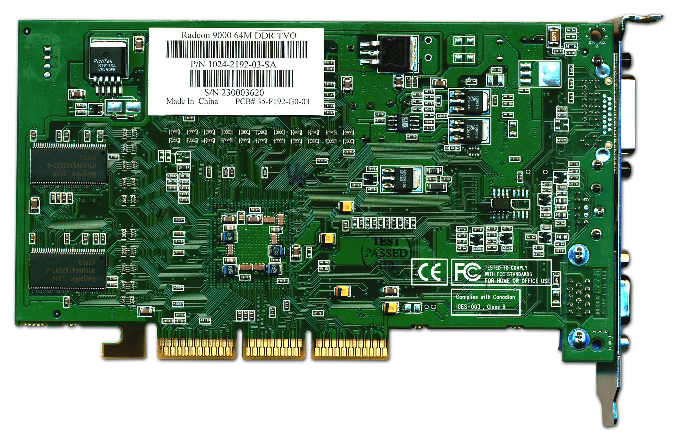 - Как можно догадаться, примерно то же самое относится и к картам на основе RADEON 9000/9000Pro (то, что они являются копиями эталонного дизайна), но вот между самой парочкой отличия есть и кардинальные. Мы прекрасно можем заметить, что различие в частотах 250/200 у RADEON 9000 и 275/275 МГц у RADEON 9000 Pro наложило очень сильный отпечаток на разводку и комплектации PCB. Я, конечно, не знаю, чем руководствовались разработчики, создавая такую весьма сложную PCB у RADEON 9000 Pro, имея намного более дешевый вариант у RADEON 9000, но на себестоимости это должно отразиться, что, впрочем, пока мы и видим даже по разнице в розничных ценах.