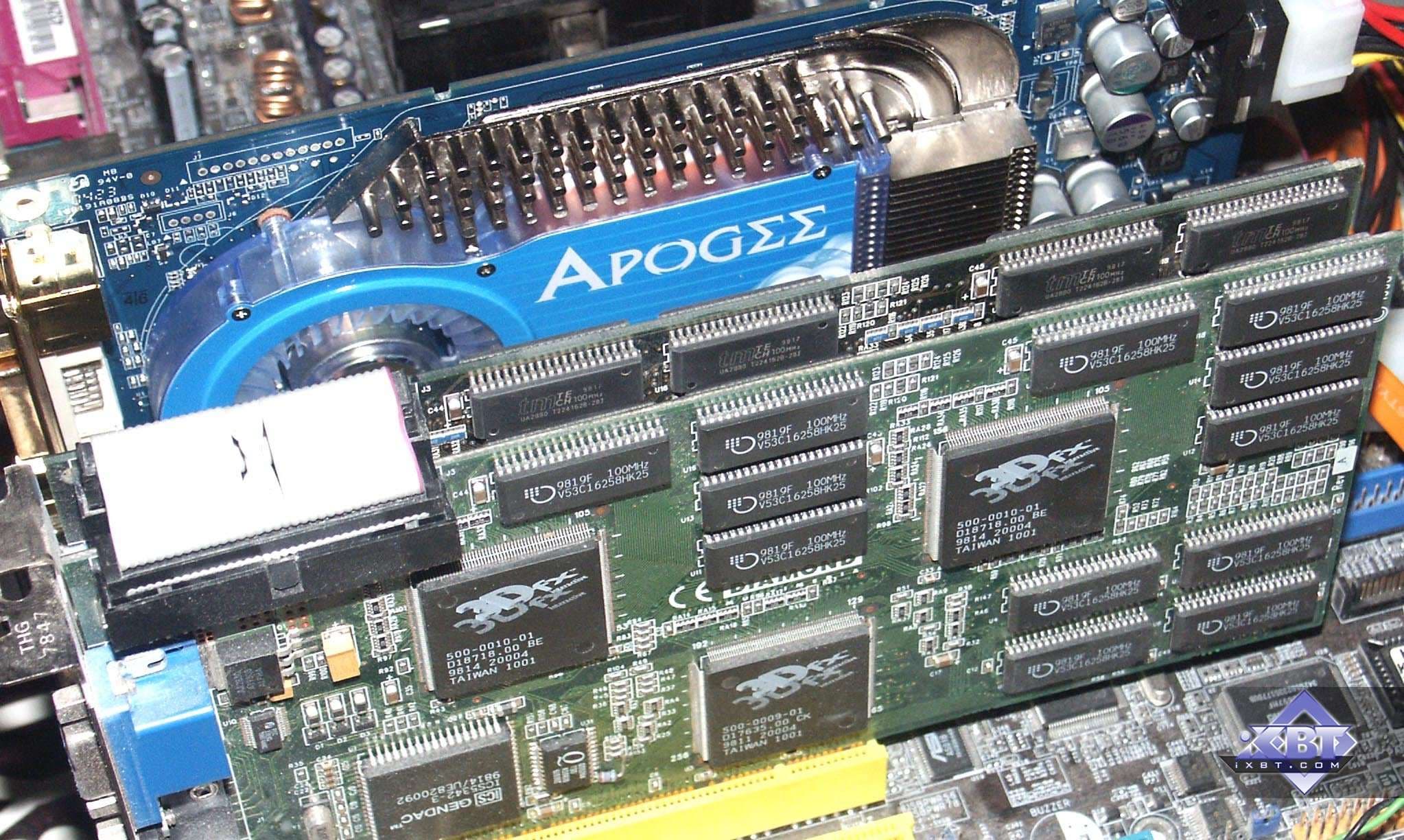 - Делить экран и работу пополам (предельный случай), или же варьировать нагрузку на каждый GPU в зависимости от приложения и работы драйвера. Но одно ясно: каждая карта работает со своей полосой (режим 3dfx Voodoo5, XGI Volari DUO).