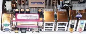 Первый слот помечен синим цветом. Монитор подключается к видеокарте, которая вставлена именно в этот слот. Еще один нюанс: слоты разнесены друг от друга на большее расстояние, чем планировала компания NVIDIA, поэтому адаптера-соединители от этой компании в данном случае не подойдут: между двумя видеокартами не один, а два промежуточных слота. Однако ASUS сделал свой аналогичный адаптер-соединитель (синхронизатор), и поставляет его вместе с системной платой (его хорошо видно на снимках).