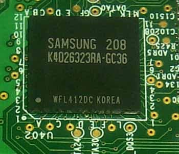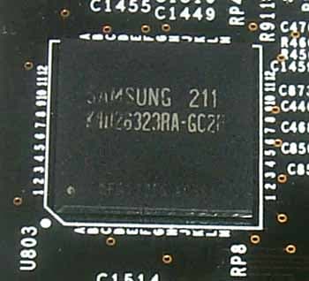 | Память производства Samsung со временем выборки 2.8 ns, что соответствует примерно частоте работы 357 (714) МГц. Карта функционирует на штатных частотах для Ti 4600 — 300/325 (650) MHz. | ![]() |