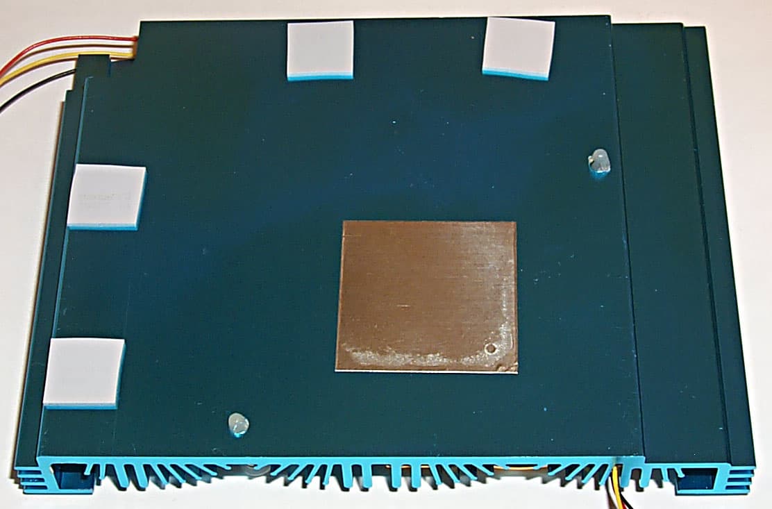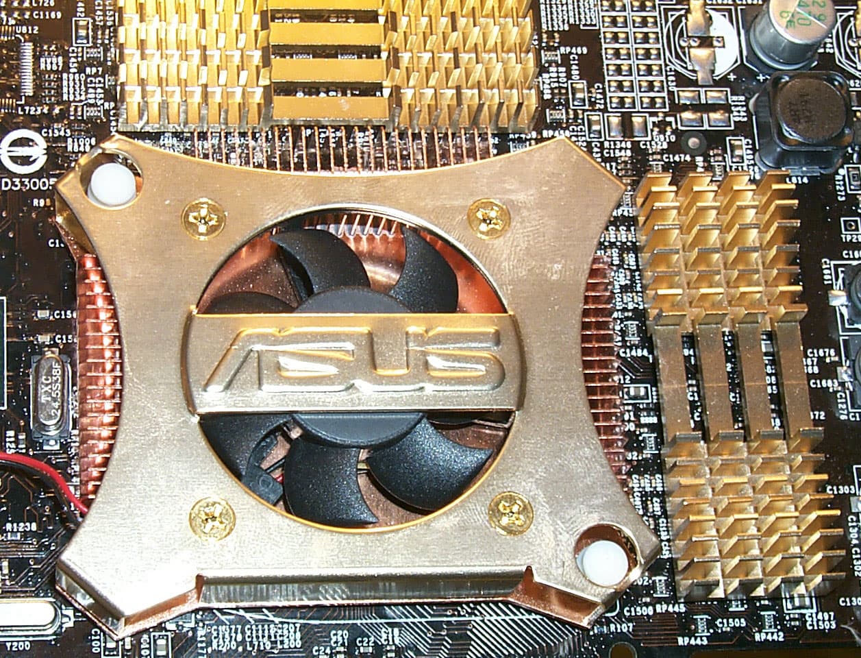 На лицевой стороне микросхемы памяти охлаждаются отдельными радиаторами (каждый на пару микросхем).