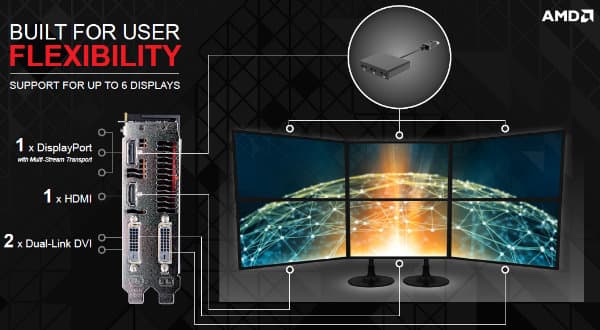 - Интегрированная поддержка до шести мониторов, подключённых по интерфейсам DVI, HDMI и DisplayPort