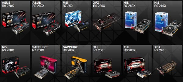 Для того, чтобы получить бесплатные игры после покупки Radeon, нужно выбрать до трёх вариантов в библиотеке, состоящей из 29 игровых проектов. Покупатель видеокарты из линейки Radeon R9, включая и R9 285, входит в Radeon Gold Reward и сможет выбрать до трёх бесплатных игр из 29 проектов. Купившие Radeon R7 260 получают доступ к Silver Reward и выбирают две игры из 28, ну а приобретение Radeon R7 240 и R7 250 порадует наградой Bronze Reward и даст возможность получения одной игры из списка в 18 штук.