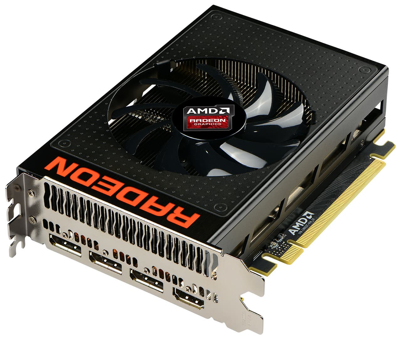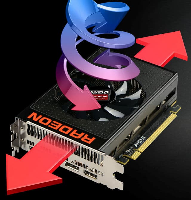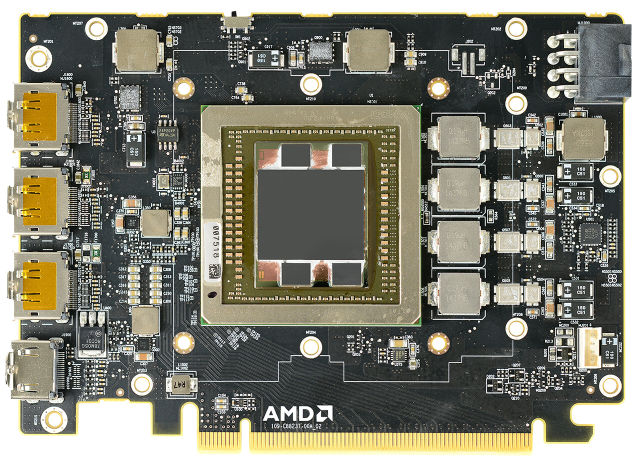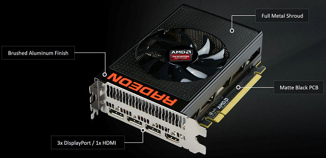 Среди разъемов на плате есть один видеовыход формата HDMI и три DisplayPort. От устаревшего разъема DVI решили избавиться совсем, хотя в Radeon HD 7970 и Radeon R9 290X они ещё были, а иногда и по два. И пользователям старых мониторов с DVI-интерфейсами теперь придется использовать переходники: пассивные, если достаточно Single Link, и более дорогие для Dual Link соединений.