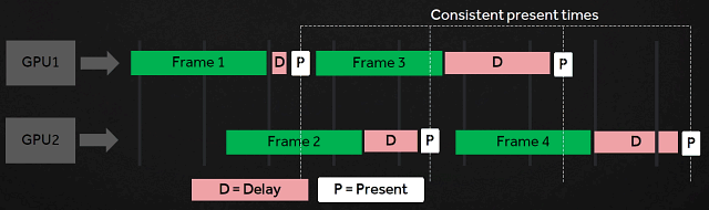В будущих драйверах Radeon Software для DX12–игр планируется специальная поддержка AFR frame pacing — технология, которая специальным образом добавляет задержки перед тем, как вывести изображение на экран, что улучшает плавность и устраняет рывки при многочиповом рендеринге.