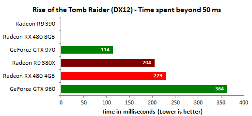 Больший объем видеопамяти у Radeon RX 480 8 ГБ и Radeon R9 390 помогает избежать крайне неприятных падений производительности и рывков FPS, по сравнению с 4-гигабайтными вариантами, включая решения конкурентов GeForce GTX 970 и GTX 960. Именно Radeon RX 480 8 ГБ дает возможность получения плавного игрового процесса с отсутствием притормаживаний, связанных с подгрузкой данных, не помещающихся в локальную видеопамять. И так как игровые консоли нынешнего поколения имеют по 8 ГБ общей памяти, то преимущество от большего объема памяти будет только расти со временем, и 8-гигабайтный вариант Radeon RX 480 отлично подойдет для игр, которые будут выходить в следующие несколько лет.