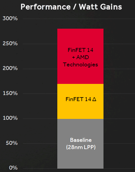 В итоге графические процессоры, произведенные при помощи техпроцессов с применением FinFET-транзисторов, обеспечивают фундаментальный рост характеристик производительности и энергоэффективности, по сравнению с аналогами, в производстве которых были использованы традиционные планарные транзисторы. По оценке специалистов AMD, применение FinFET-техпроцессов позволяет обеспечить или на 50-60% меньшее потребление энергии, или на 20-35% большую производительность при прочих равных.