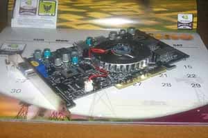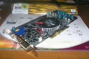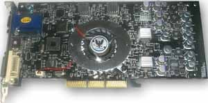 | А эта карта отличается от предыдущей как раз тем, что имеет на борту не 3.6, а 3.3ns микросхемы памяти производства Hynix. И частота работы памяти повышена до 275 (550) МГц, хотя объем оставлен тем же — 64 мегабайта. Частота работы графического процессора — 250 МГц. | ![]() |