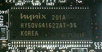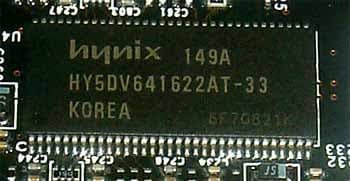| Несмотря на то, что плата комплектуется модулями памяти с тем же временем выборки — 3.3 ns, микросхемы памяти имеют упаковку BGA (производство — от все той же любимой S/U/M/A/ фирмы Hynix). Ведь для выпуска такой карты корейская компания использовала дизайн от Ti 4600. Частота работы памяти — 275 (550) МГц, ее объем составляет 128 мегабайт. Частота работы графического процессора — 250 МГц. | ![]() |