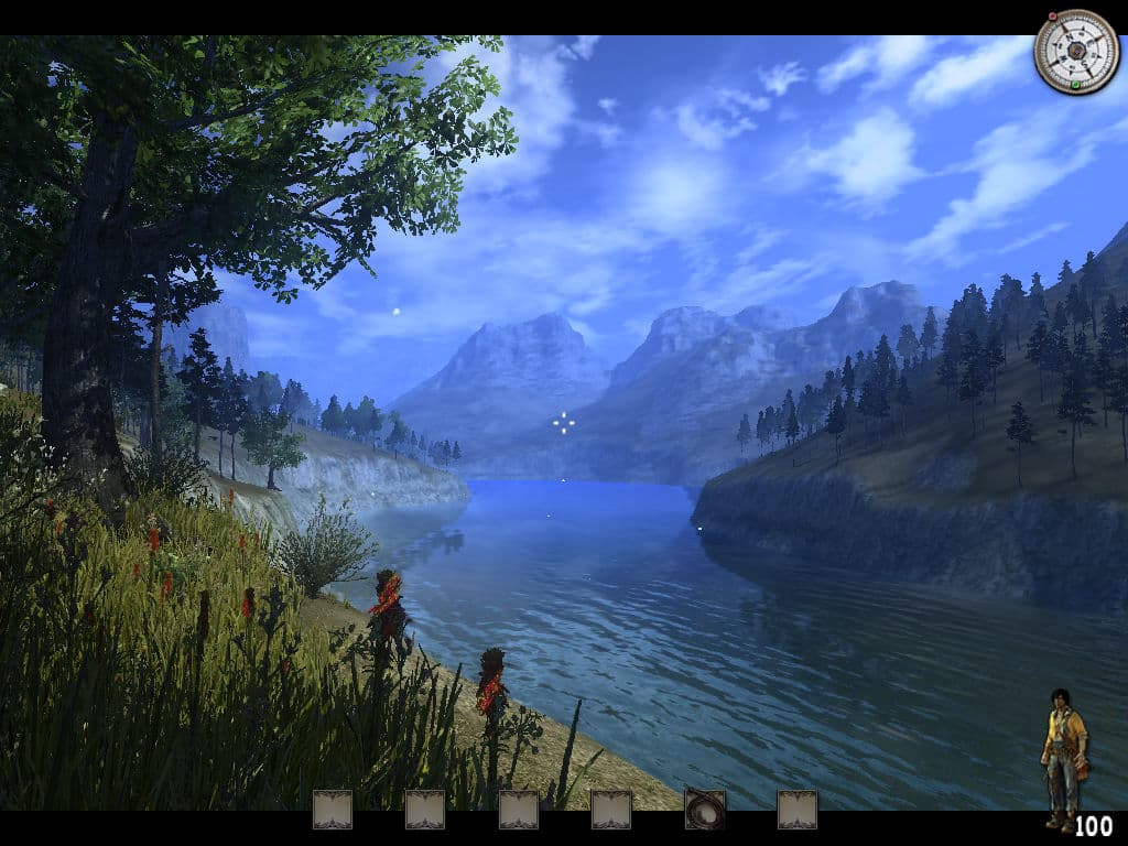 Понятно дело, что в такой игре обязательно должны быть водные поверхности, красивые реки и озера. Так и получилось, водные поверхности в игре выглядят отлично, они технологичны, визуализируются как отражения, так и преломления, преломляются все подводные объекты, а отражаются почти все, кроме самых мелких, вроде травы. Волны являются попиксельным эффектом, применяются динамические карты отражений и преломлений, вода прозрачная и местами почти как настоящая.