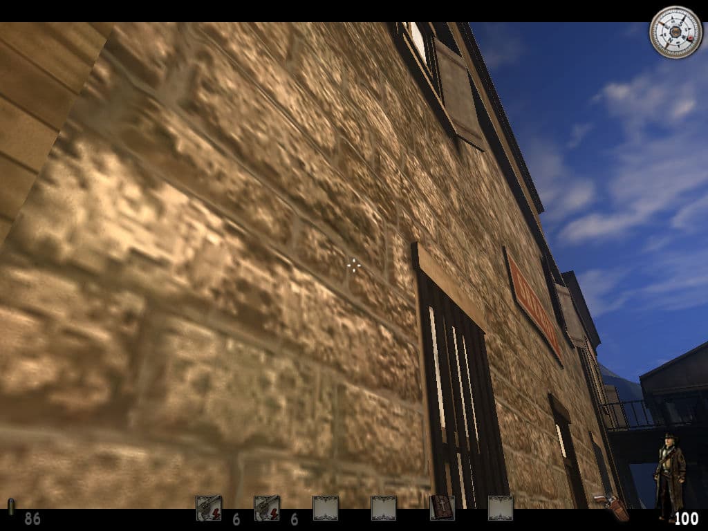 В Call of Juarez применяется мультитекстурирование вплоть до 8-10 текстур на пиксель: основная текстура, карта высот (для parallax), карта нормалей, карты теней, specular карта, лайтмап и другие. Наложение карт нормалей применяется для большого количества поверхностей, разрешение большинства текстур достаточно высоко, но в редких случаях детализации немного не хватает, хотя чаще всего разрешение карт нормалей и остальных текстур достаточно, именно из-за нормалмаппинга модели и уровни насыщены мелкими деталями.
