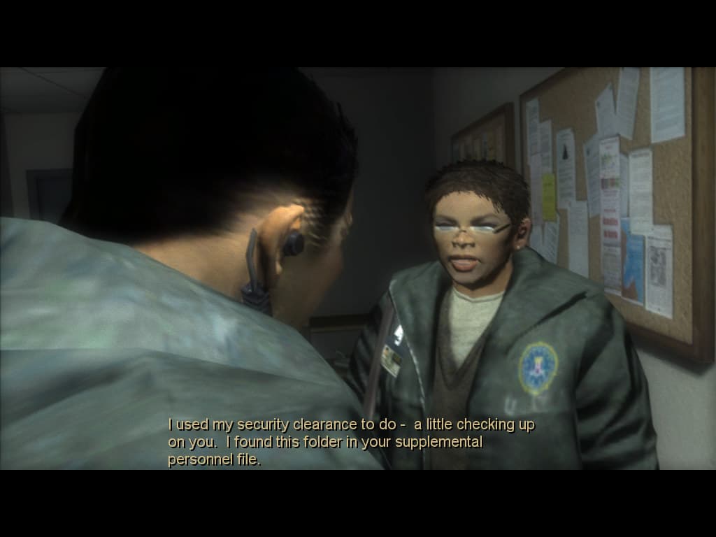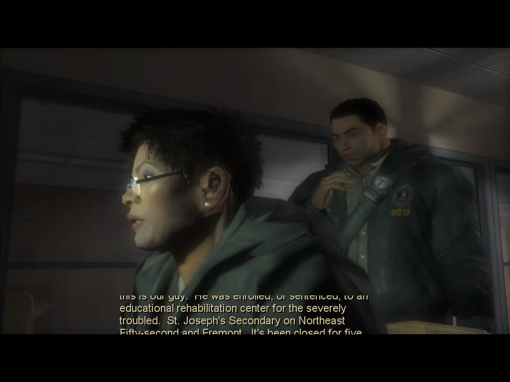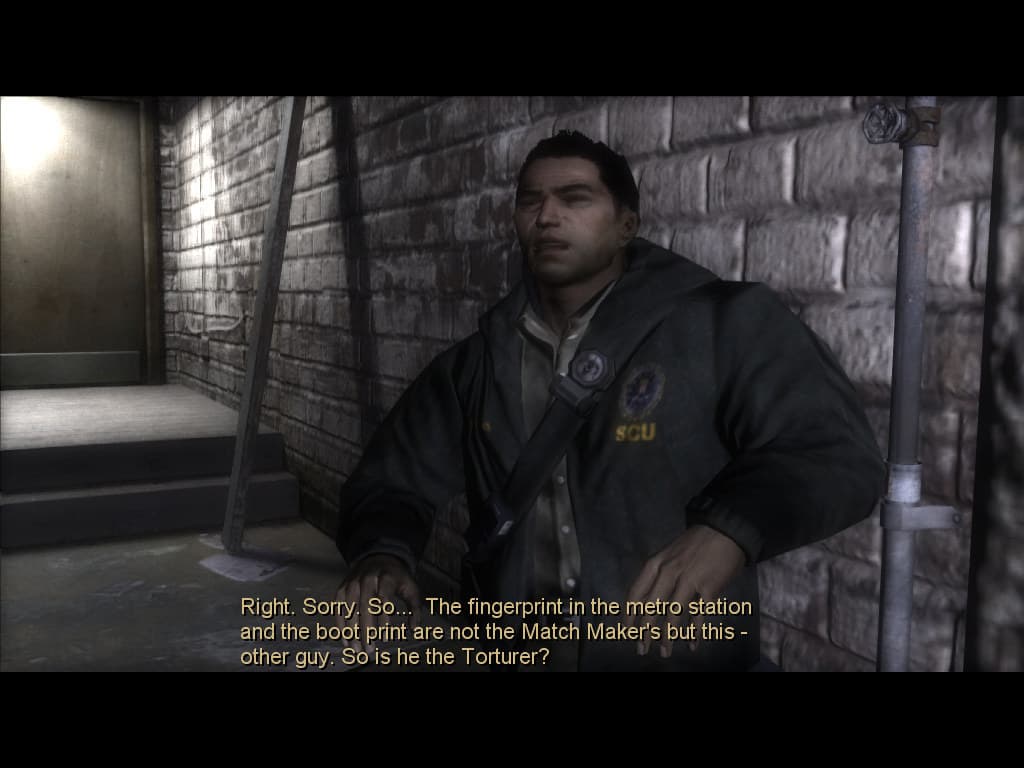 Другое дело, что, на мой взгляд, можно было сделать более сложные модели хотя бы для скриптовых сцен. Ведь игра претендует на кинематографичность, а какая тут кинематографичность, если на сценах с близким расположением людей к камере видно всю их посредственную геометрическую детализацию? Нормалмаппинг ведь не спасает от всех бед, стыдно должно быть за такое в 2005-2006 годах. Особенно, если речь о главном герое:
