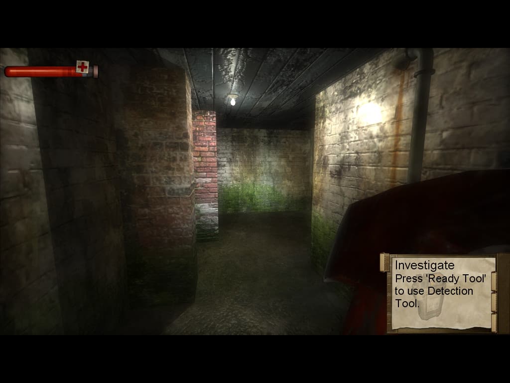 Ну и в самом конце рассмотрим один из наиболее выгодных моментов в графической части игры — эффекты постобработки изображения. В Condemned применяется несколько давно уже привычных фильтров постобработки, такие как bloom — фильтр, увеличивающий яркость светлых участков изображения, noise — спецэффект для придания "кинематографичности" скриптовым сценам и применяемый в некоторым других случаях, motion blur (или radial blur) — эффект размытия в движении, применяемый в скриптовых сценах игры и в режимах поиска улик, distortion — эффект искажения изображения неровными прозрачными поверхностями, а также некоторые другие постфильтры: desaturation, sharpen и т.д.